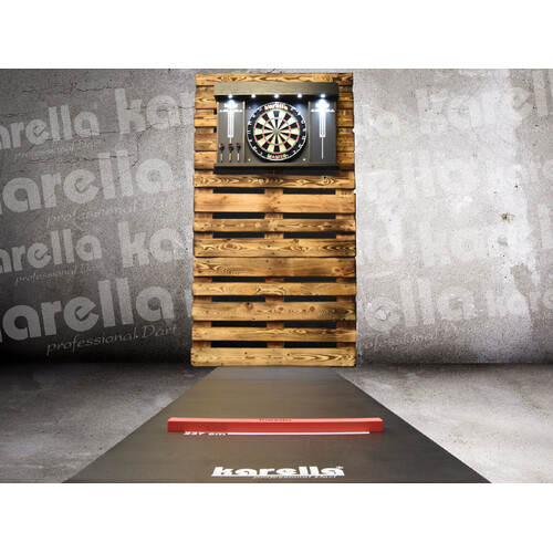 Die Karella Oche Ultimo sorgt für 100 % korrektes Einhalten des Wurfabstandes, wodurch sich der Spieler ausschließlich auf seinen Wurf konzentrieren kann der auffallend rote Abwurfbalken besteht aus einem formstabilen Verbund aus Kautschuk und Kunststoff. Einfach die Klebefolie an der Unterseite abziehen und auf die Dartmatte im Abstand von 237 cm zum Dartboard aufkleben. Die Spezialklebung hält bombenfest auf jedem Bodenbelag. Die Balkenbreite von 60 cm ist ausreichend für jede Wurfstellung. Beim Auf- und Abrollen der Dartmatte verbleibt die klebefeste Oche auf der Matte. Preiswerte und universell einsetzbare Ultimo Oche für jedes Niveau.