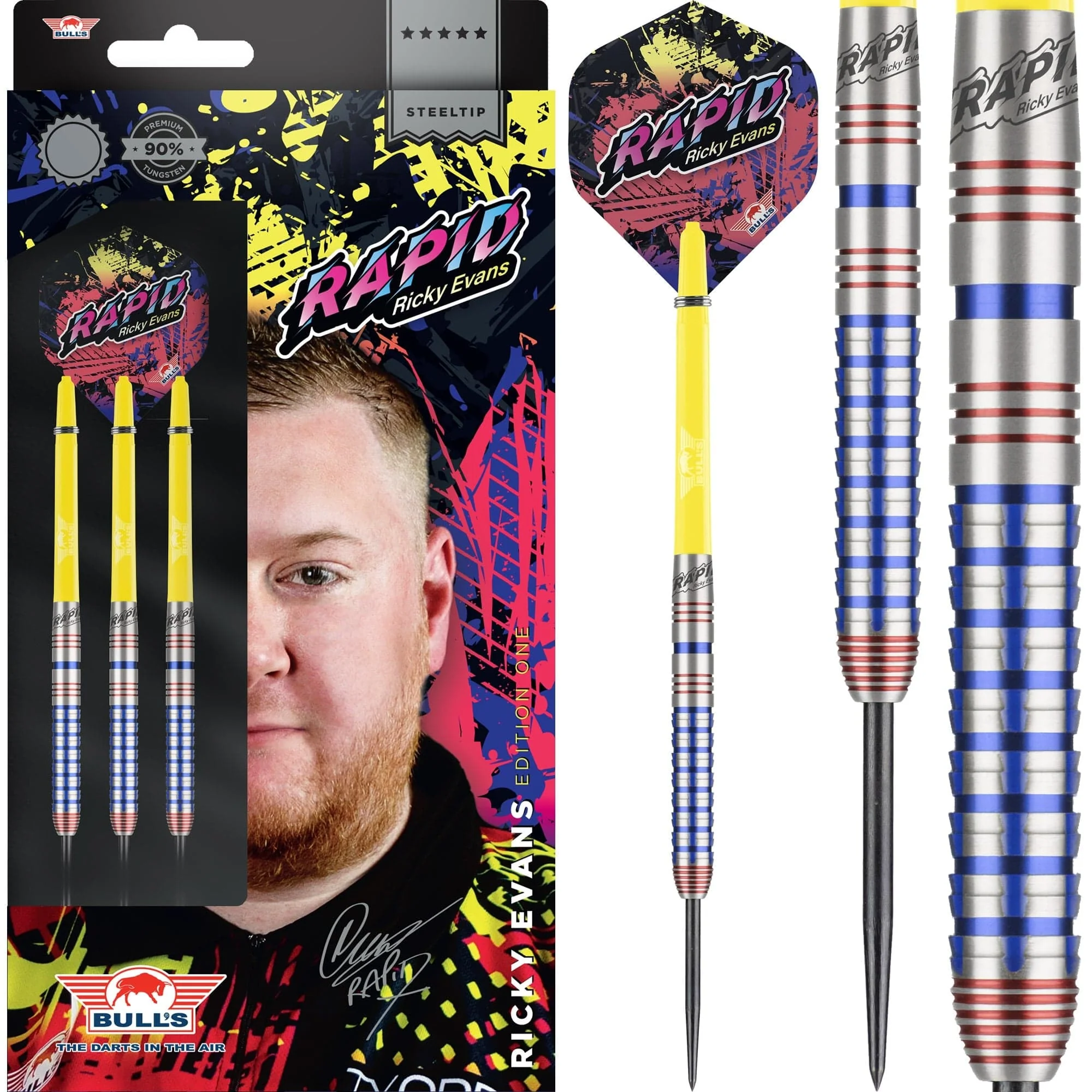 Bulls NL Ricky Evans Darts Steel Tip 90% – Rapid Red Blue